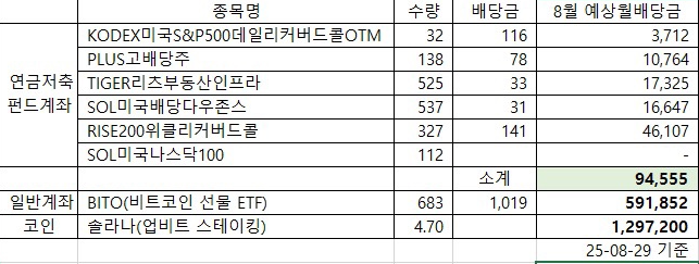 | 연금저축펀드, 10월 배당금(분배금) 내역(BITO, 솔라나 스테이킹 포함) (0) | 2025.10.10 |