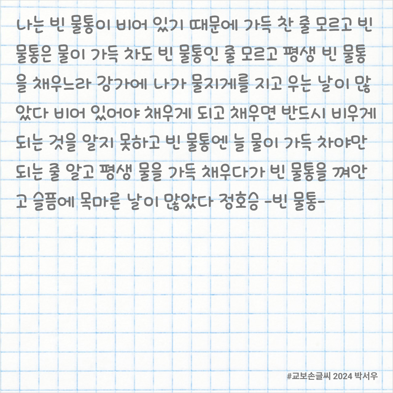 교보손글씨 2024 박서우 체를 사용해봤습니다.