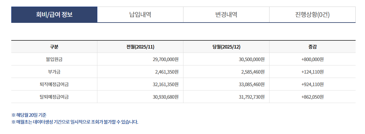 | 대한지방행정공제회 퇴직예정급여금 3,216만원 돌파 (0) | 2025.11.26 |