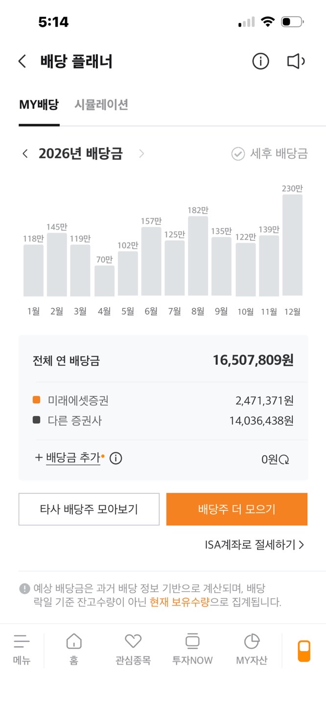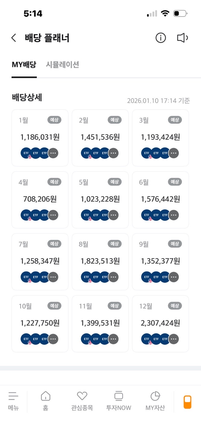 미래에셋배당 플래너 2025년 배당/ 2026년 배당예상(토스증권 포함)