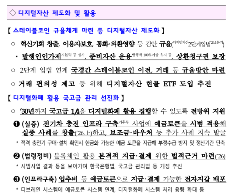 2026년 경제성장전략 중에서 디지털 자산 제도화 및 활용에 대한 부분 중에서
