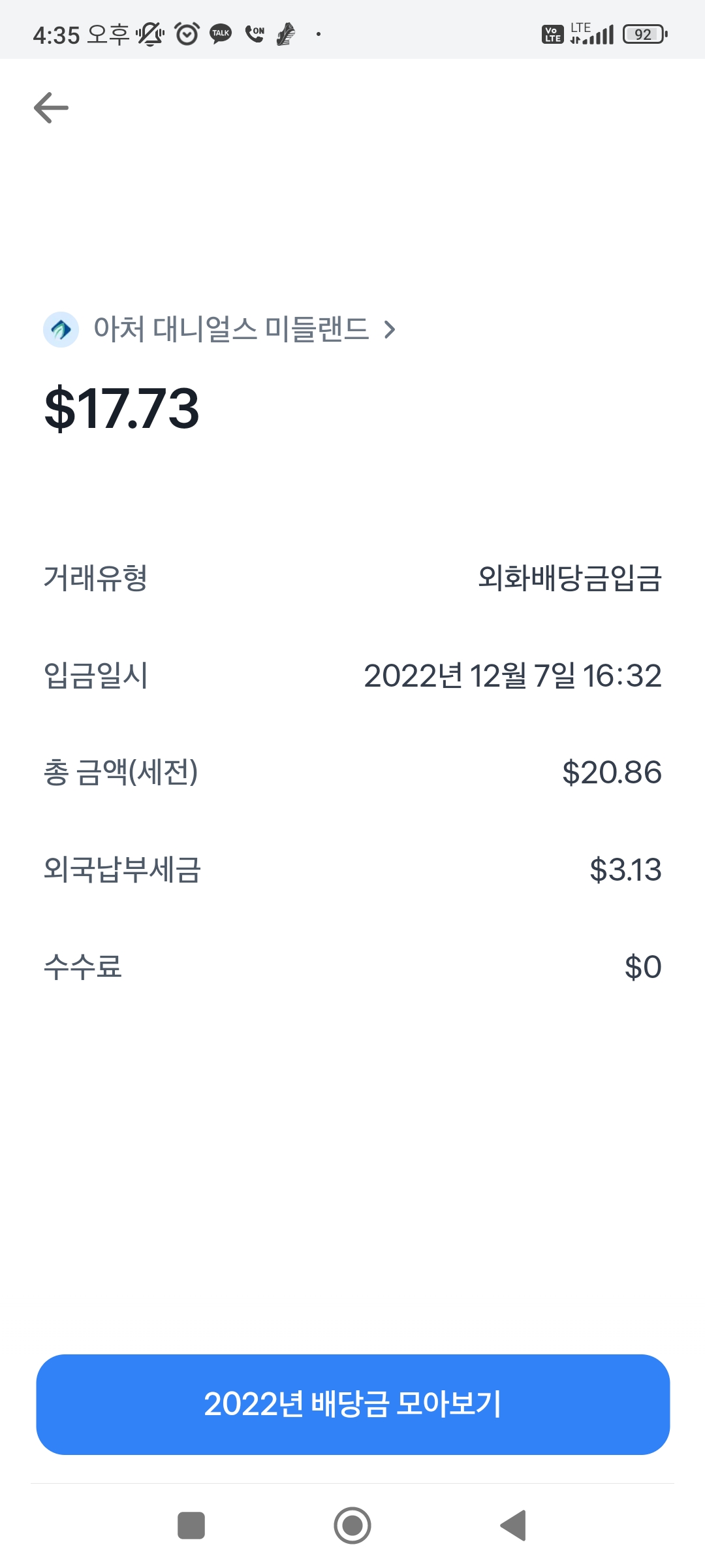 221207_ADM 아처 대니얼스 미들랜드 22년 4분기 배당금 입금 되었습니다.