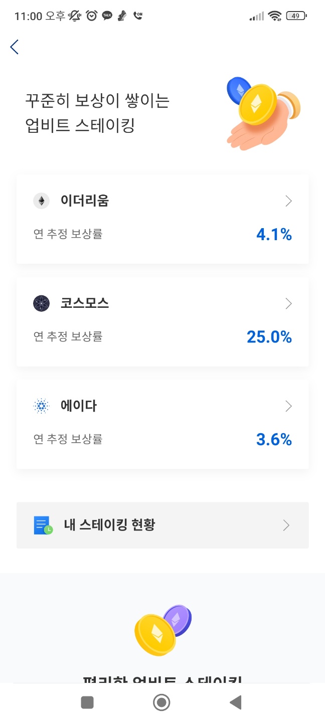 업비트 이더리움 에이다 스테이킹 연 추정 보상률