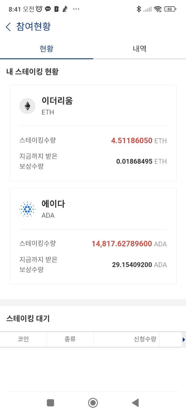 업비트 이더리움, 에이다 스테이킹 보상 현황
