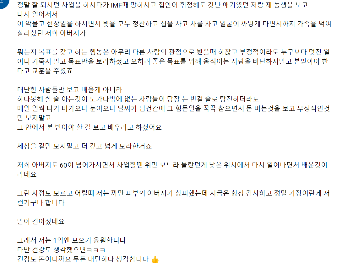 유튜브에서 본 댓글이여서 아이디는 따로 표기하지 못했습니다. 해당 유튜브 링크 남겨드립니다.