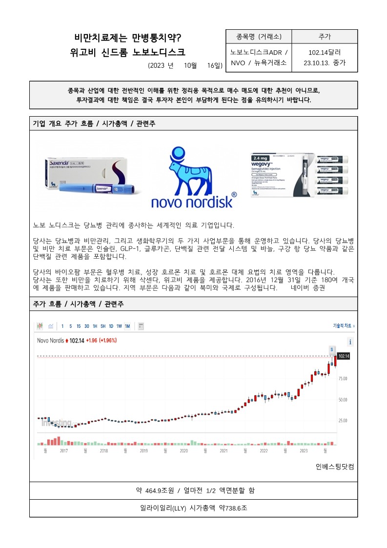 노보노디스크에 대해서 간단한 보고서 작성해보았습니다.