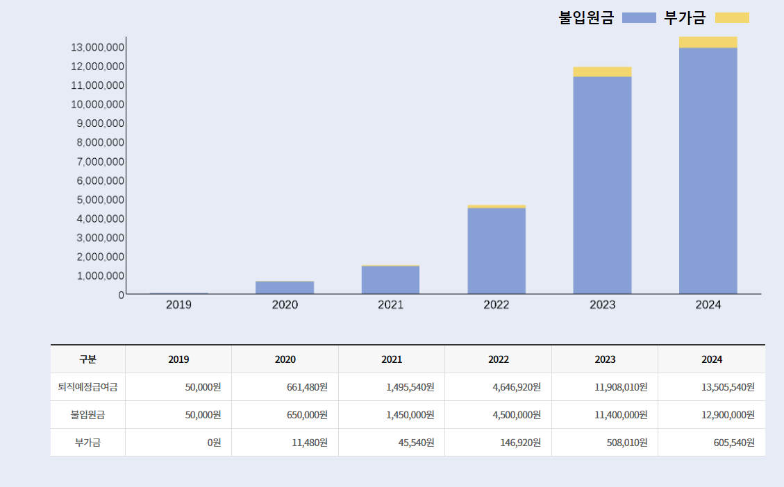 퇴직금 용으로 지방행정공제회 회비를 납부하고 있습니다. 1290원을 납입하였고 60만원이 이자로 생겼네요.