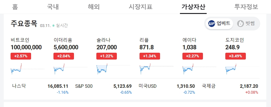 24년 3월 11일 오후 18시 조금 전에 비트코인이 한화로 1억을 돌파했습니다.