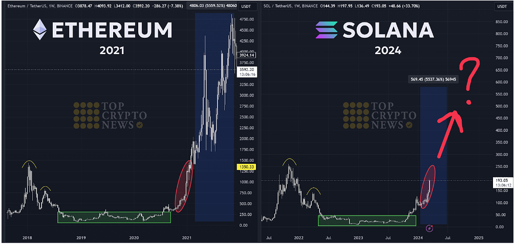 21년 이더리움 차트와 24년 솔라나 차트 비교